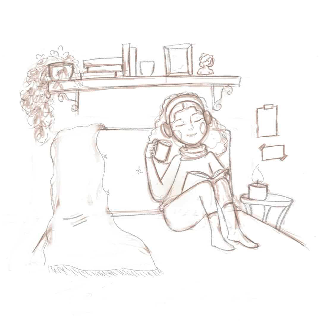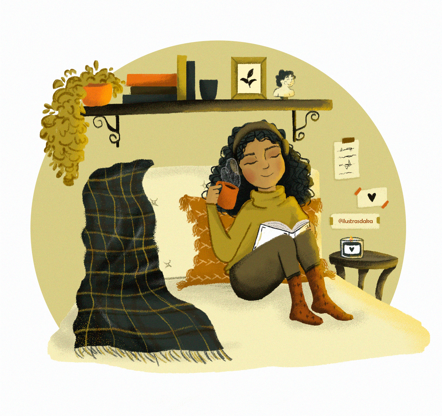 Ilustração editorial para ilustrar matéria sobre saúde mental - tempo para si